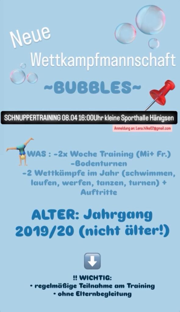 Neue Wettkampfmannschaft – Bubbles
